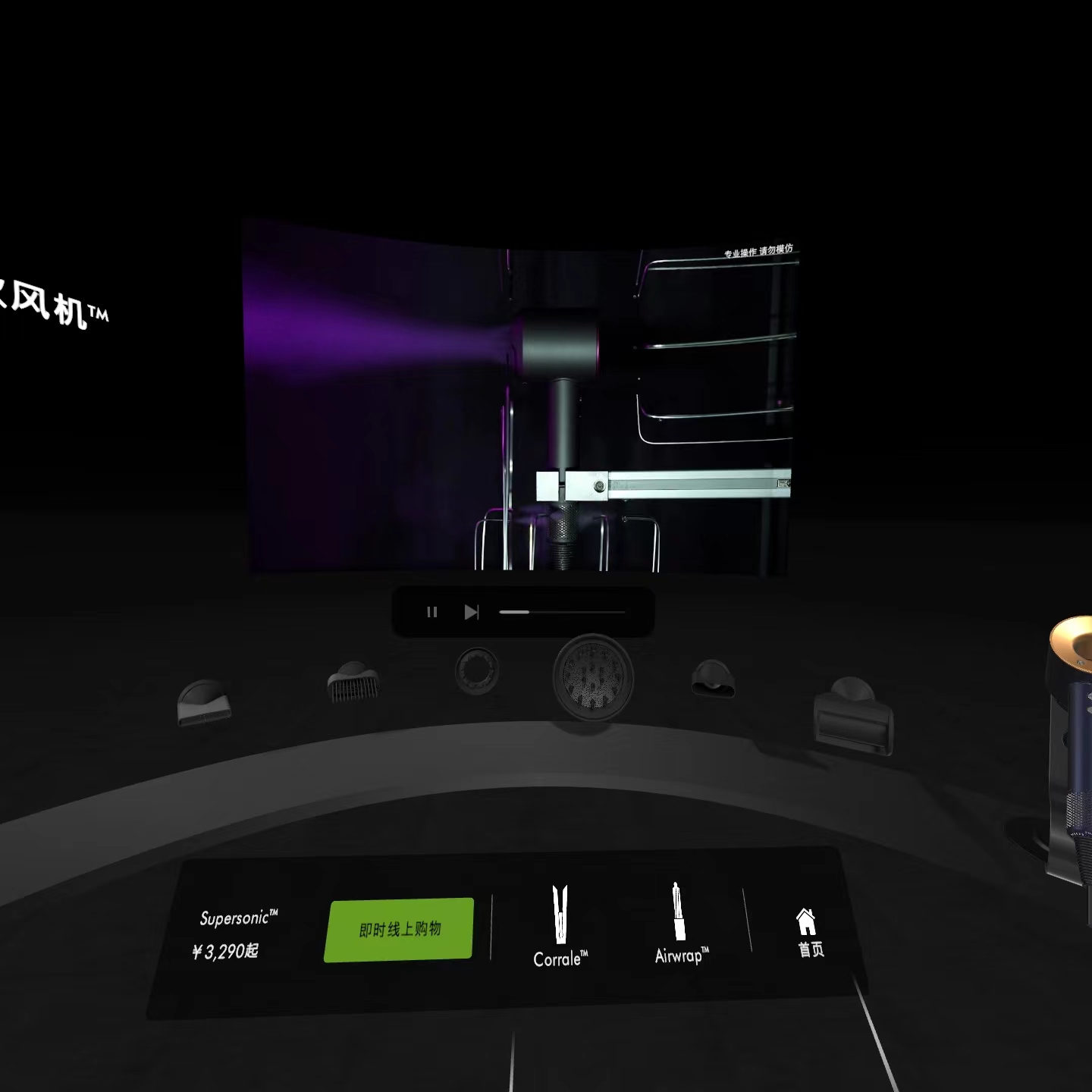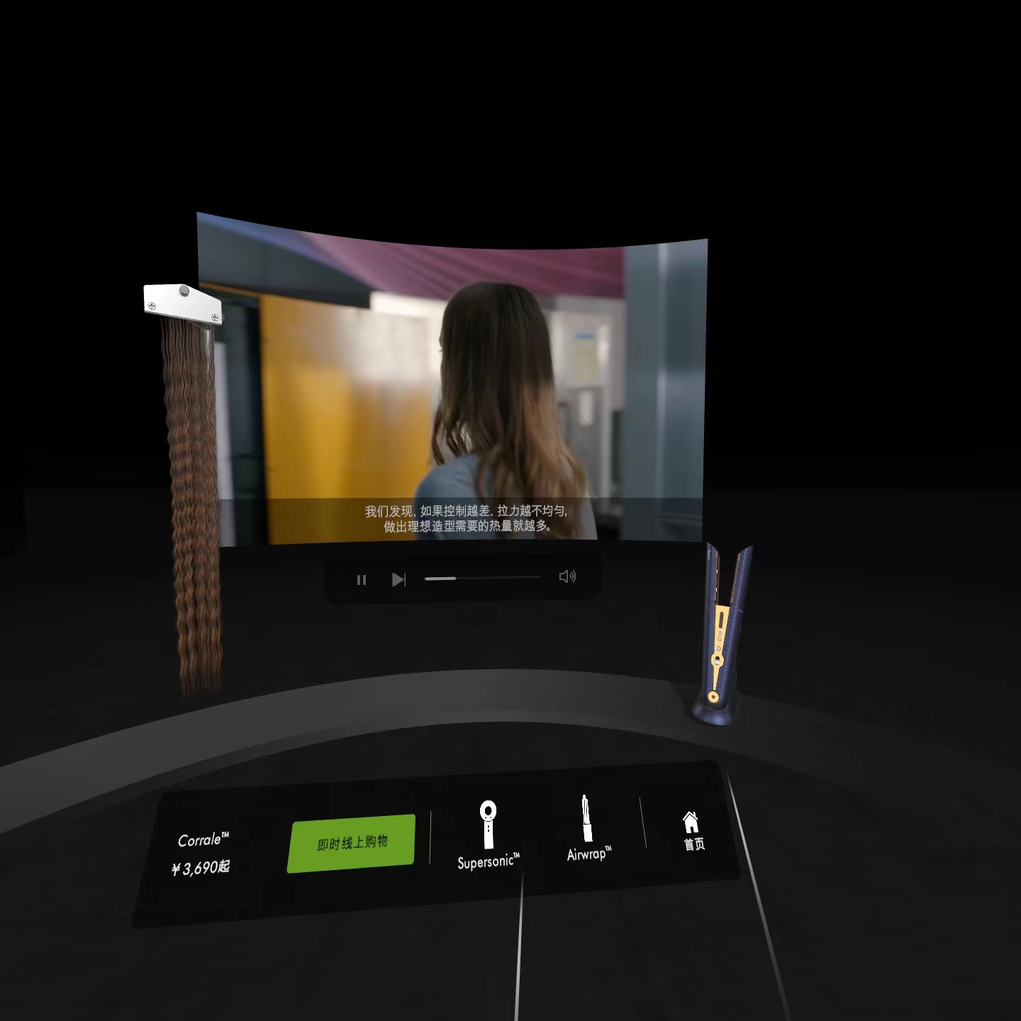 戴森高端品牌,果然是比较超前,已经要在元宇宙开始发力了,昨天在PICO的应用商店下载了戴森的应用,效果做得确实不错,主要就是介绍了它的3款产品,吹风机是必须的,戴森的拳头产品,再就是carrale和airwrap,原谅我们男同志虽然看着这俩眼熟,但一时想不起叫啥来,三款产品的售价都在3000+,没体验过这么高端的吹风机,真不知是好在哪,竟然比PICO4还贵,看来还是钱不够多呀,有钱人的世界还不属于我。
