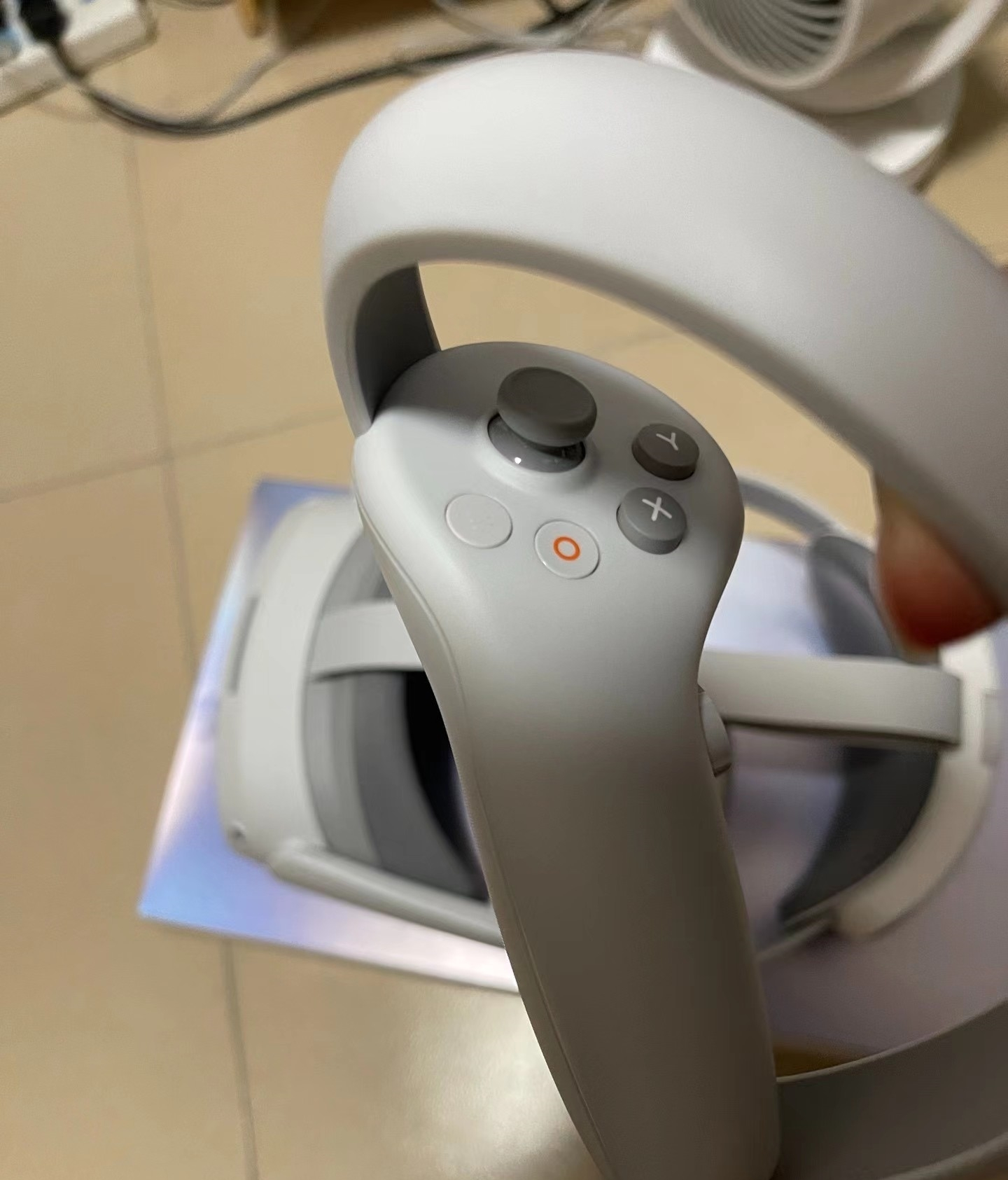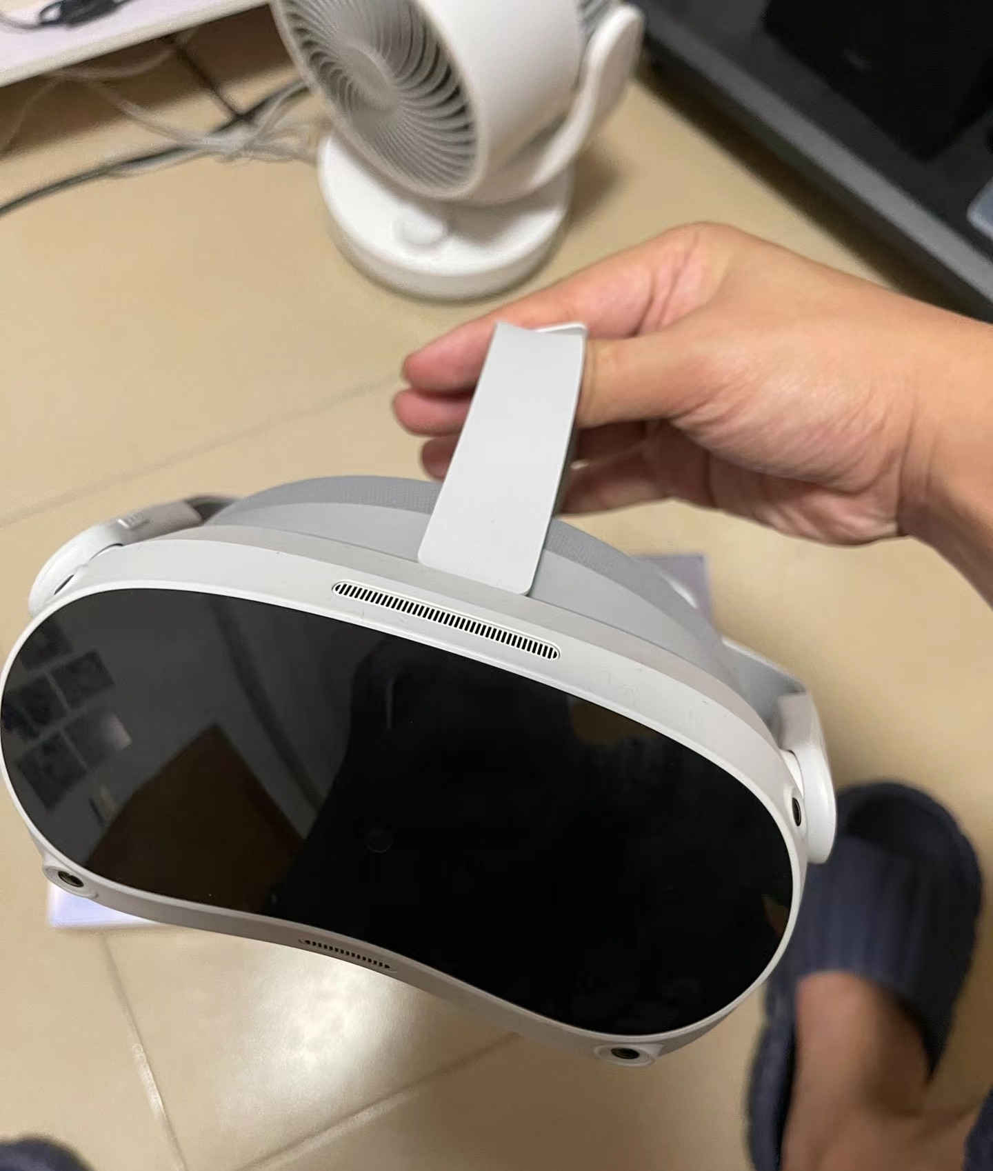 第一眼看到pico4,印象是很小巧,整体也不重,很轻薄哦,比起neo3感觉不笨重了,画面更清晰了。特别是手柄很有特色,圆弧形但是放桌面容易晃来晃去。电池为两节五号电池,按进去会有啪的一声,跟上子弹一样。手柄很适合小手的人。感觉更灵活轻快了。