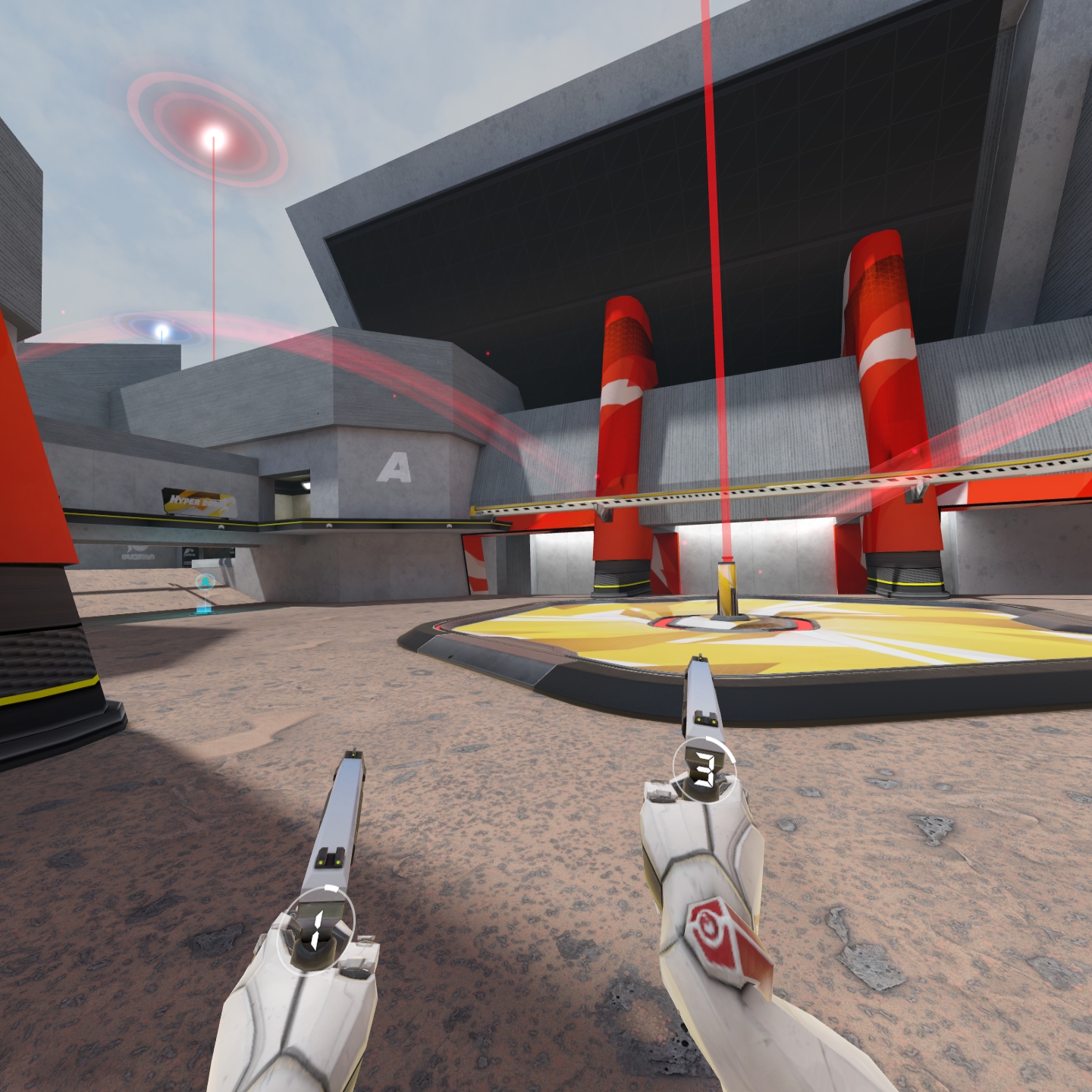 你处于极为有科技感的场景中,手拿双枪,穿梭于各个地方,你可以以极快的速度,立马站于敌人身后,将敌人快速击倒。在快速的穿梭中,与队友合作,将敌人一一击灭。
